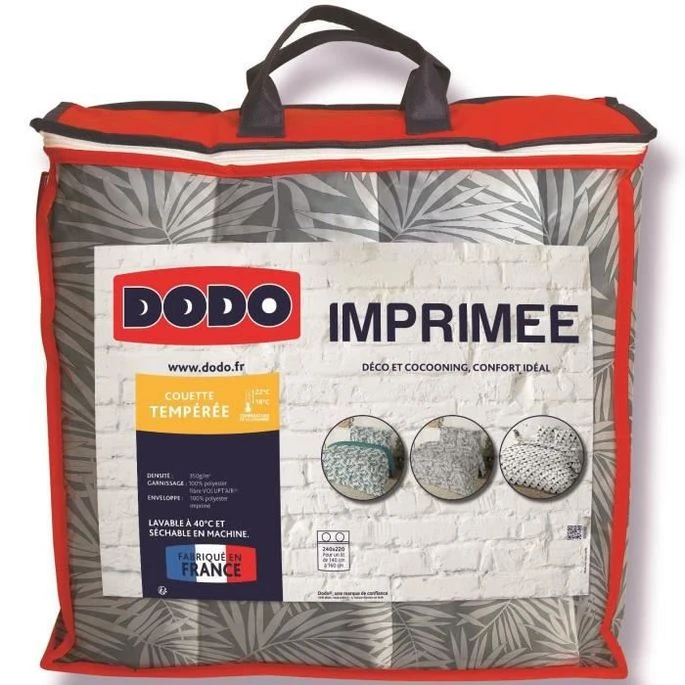 Couette Imprimée Palme 220 X 240 Cm – Tempérée – 100% – Polyester – 2 Personnes – Blanc – DODO
