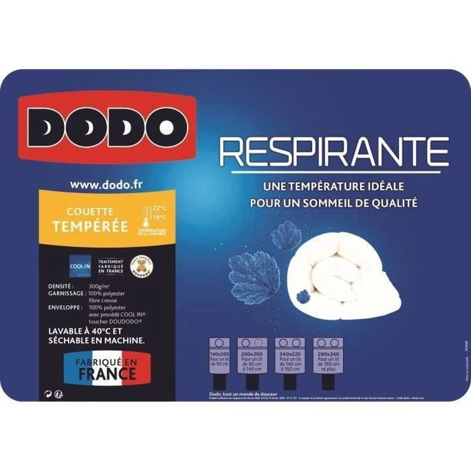 DODO Couette Tempérée 300g/m² COOL’IN 200×200 Cm Blanc