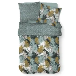 Parure De Lit Mawira – 2 Personnes – 260 X 240 Cm – 100% Coton – Bleu Motif Tropical – TODAY