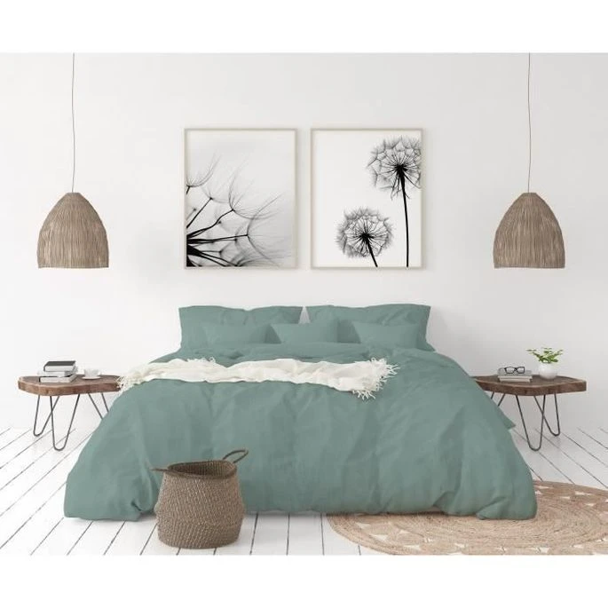 SOLEIL D’OCRE Parure De Lit Bicolore – Coton Lavé – 240 X 290 Cm – Bleu Canard Et écru