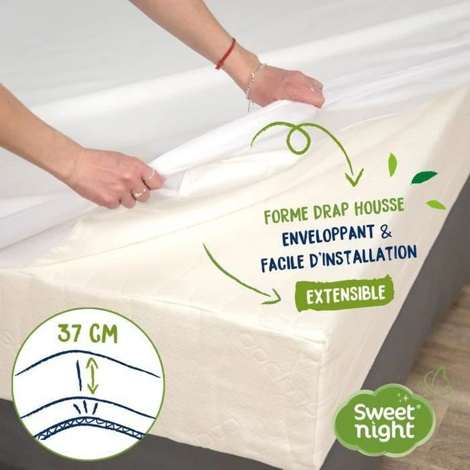 SWEETNIGHT Protege-matelas Imperméable AXEL 180×200 Cm – Blanc
