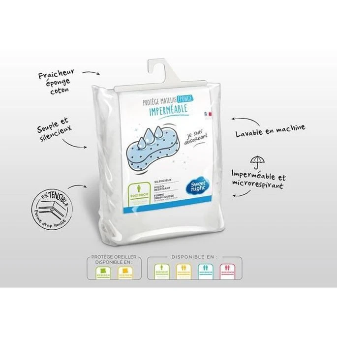 SWEETNIGHT Protege-matelas Imperméable AXEL 180×200 Cm – Blanc