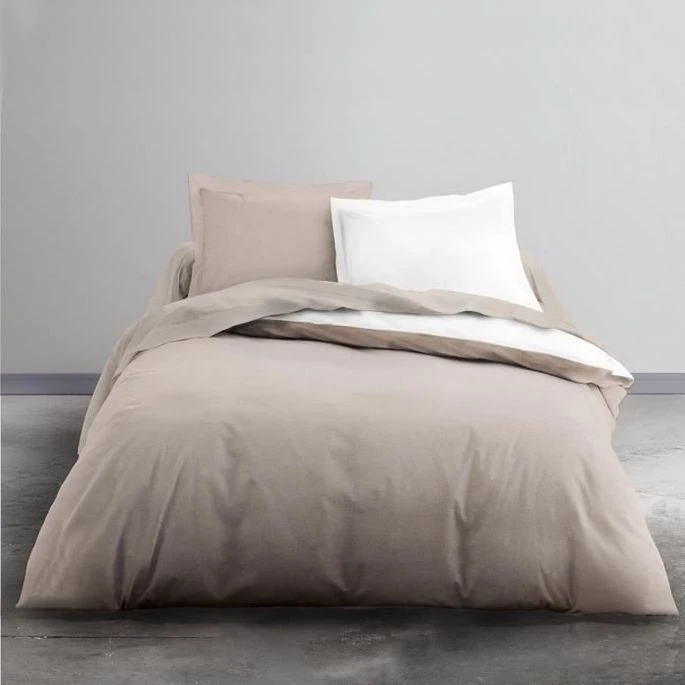 TODAY Charlie Parure De Lit Coton 1 Personne – 140 X 200 Cm – Bicolore Blanc Et Beige