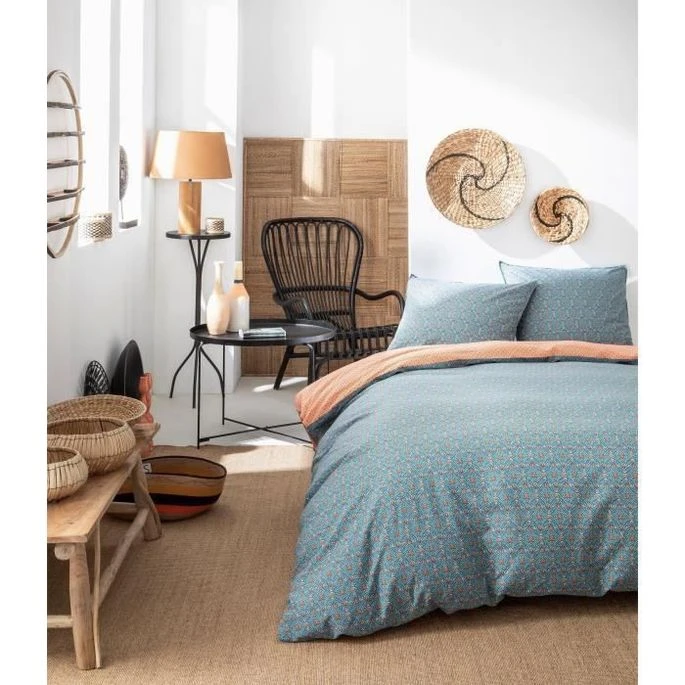 TODAY Jules Parure De Lit Coton 2 Personnes – 200 X 200 Cm – Bicolore Bleu Et Beige