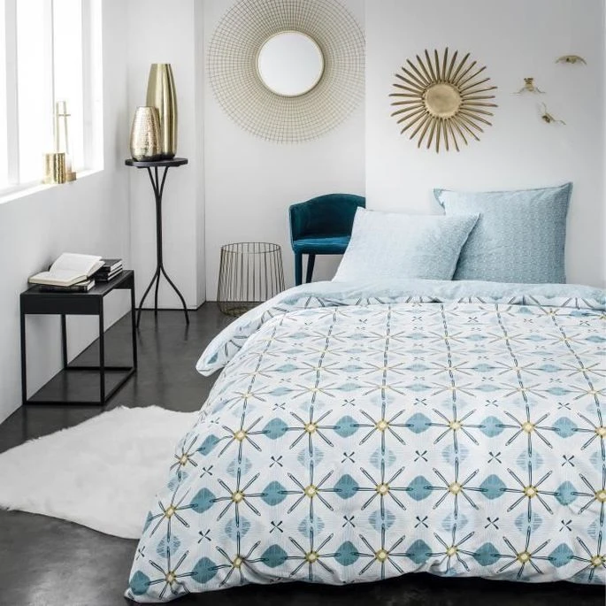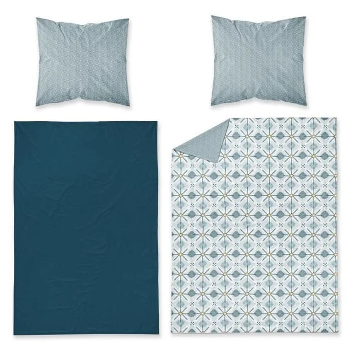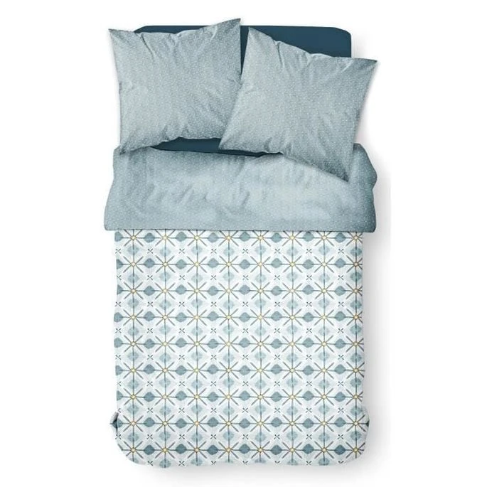 TODAY Jules Parure De Lit Coton 2 Personnes – 200 X 200 Cm – Bicolore Bleu Et Beige