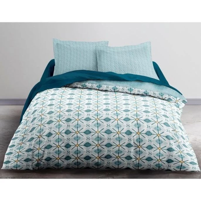 SOLEIL D’OCRE Parure De Couette Bicolore – Coton Lavé – 220 X 240 Cm – Bleu Canard Et écru