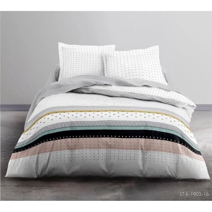 TODAY Parure De Lit Coton 2 Personnes – 220×240 Cm – Imprimé Gris Gael